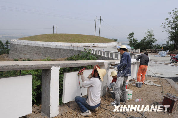 5月3日,工人正在加緊修建漢旺鎮5·12汶川大地震遇難者陵墓。新華社記者陳燮攝 |