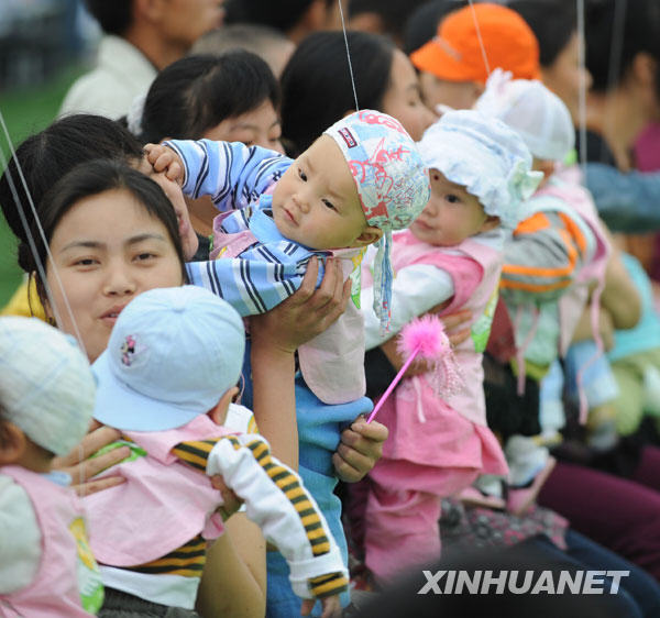 2009年5月13日,在什邡市剛剛落成的由北京援建的北京小學(xué)操場上,108個“羅漢娃”舉行了集體生日抓周活動。許多愛心人士不遠千里來到現(xiàn)場,與寶寶們結(jié)對,拜認干爹干媽。