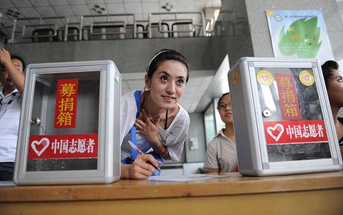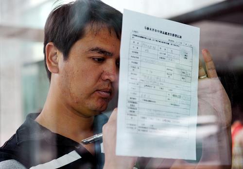 7月12日,在烏魯木齊市團(tuán)委的招募大廳,一名維吾爾族青年在填寫志愿者申請表。為做好“7·5”事件善后救治、安撫和幫扶工作,自7月10日起新疆志愿者協(xié)會秘書處和烏魯木齊志愿者協(xié)會開始招募志愿者,從事心理疏導(dǎo)、專業(yè)傷員護(hù)理等工作。連日來,各族群眾通過現(xiàn)場和電話方式踴躍報名,截至12日中午12點,報名人員已經(jīng)接近3000人。新華社發(fā)(江文耀 攝)