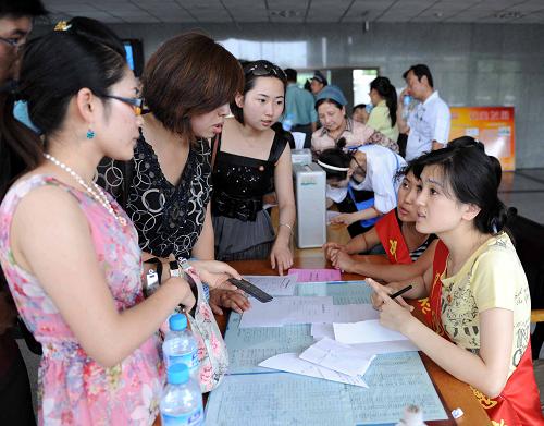 7月12日,在烏魯木齊市團(tuán)委的招募大廳,幾位市民在向工作人員咨詢志愿者報名事宜。新華社記者 沙達(dá)提 攝
