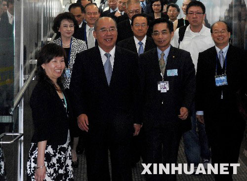 5月26日,中國國民黨主席吳伯雄(前右三)抵達(dá)香港國際機(jī)場。當(dāng)日,中國國民黨主席吳伯雄率領(lǐng)中國國民黨訪問團(tuán)離開臺北,經(jīng)香港轉(zhuǎn)赴南京,開始為期6天的大陸訪問行程。 新華社記者公磊攝