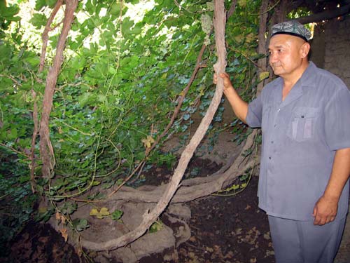 盤腿坐在葡萄鄉(xiāng)達(dá)甫散蓋村尼牙孜·熱克甫家院子里的炕上,吃著香噴噴的烤馕和好幾種叫不出名字的葡萄,你不由得羨慕起這種安寧富足的生活來。這是葡萄溝里的一戶家訪旅游點(diǎn)。寬敞的院子里三面都是炕,炕桌上擺滿了果品小吃,院頂?shù)哪炯苌吓罎M了葡萄藤,把院子遮得嚴(yán)嚴(yán)實(shí)實(shí),你一點(diǎn)也感不到外邊太陽的火辣。53歲的尼牙孜·熱克甫告訴記者,他家有兩畝地,每年可產(chǎn)500公斤葡萄,收入1萬元,去年投入4.5萬元裝修了房子和兩個(gè)院子,開始搞起家訪旅游來,這樣去年的收入就增加到3萬元,今年到8月份,收入已經(jīng)達(dá)到3萬元。家訪旅游向游客提供飯菜、小吃,每人收費(fèi)30元,每天可接待30到100人。全葡萄溝的家訪點(diǎn)有兩三百家,本村有100多家,像他家這樣上規(guī)模的有15家。回想起上個(gè)世紀(jì)60年代,一年掙四五百工分,僅夠吃飽肚子的生活,尼牙孜·熱克甫揮了揮手,笑了起來:“還是這些年黨的政策好啊!”他特別提到農(nóng)村稅費(fèi)改革后,他家少交了100多元稅費(fèi)。尼牙孜·熱克甫興致勃勃地帶記者去他家地里看那棵生長(zhǎng)了500年的葡萄樹,仍然是枝繁葉茂,碩果累累。他說,在葡萄溝里,像這樣生長(zhǎng)了500到800年的葡萄樹還有不少。