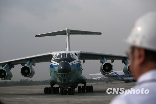 4月15日下午17時03分,一架載有青海玉樹地震首批傷員及傷員家屬的中國空軍運輸機抵達成都雙流國際機場,其中35名地震傷員將分別送往四川省人民醫院和四川大學華西醫院進行救治。圖為載有青海地震傷員的中國空軍運輸機。 中新社發 張浪 攝