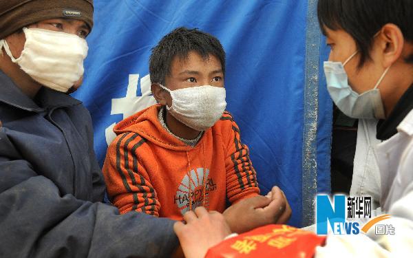 青海玉樹地震災區活躍著一支由玉樹第二民族中學等學校的中學生和從外地回鄉的大學生組成的漢藏翻譯服務隊,他們為各醫療隊和群眾提供漢藏語翻譯,受到災區群眾和醫護人員的歡迎。新華社記者陶明攝