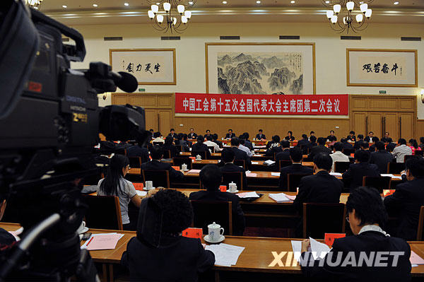 10月17日,中國(guó)工會(huì)第十五次全國(guó)代表大會(huì)主席團(tuán)在北京舉行第二次會(huì)議,討論提出了中華全國(guó)總工會(huì)第十五屆執(zhí)行委員會(huì)委員、經(jīng)費(fèi)審查委員會(huì)委員候選人預(yù)備人選名單,大會(huì)選舉辦法(草案),大會(huì)預(yù)選監(jiān)票人名單(草案),大會(huì)選舉監(jiān)票人名單(草案)。 新華社記者 何俊昌 攝