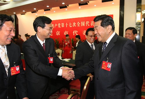 10月16日,賈慶林同志參加十七大北京代表團(tuán)討論。 新華社記者馬占成攝