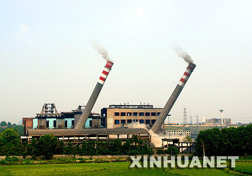8月15日,貴州華電清鎮發電有限公司火力發電機組兩座120米高的煙囪被爆破傾倒。位于貴陽市郊國家級風景名勝區紅楓湖畔的清鎮發電有限公司,在1965年至1989年先后建設三期共8臺機組。為保護紅楓湖水質和周邊環境,本次爆破拆除一至二期工程共6臺機組使用的煙囪。(新華社 金玉龍 攝)