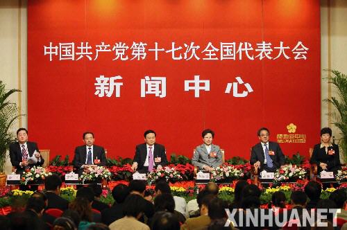 10月20日,北京十七大新聞中心舉辦主題為“重視未成年人教育”的集體專題采訪活動,十七大代表袁貴仁、于幼軍、黃晴宜、胡春華、趙實接受媒體采訪。 新華社記者 李濤攝