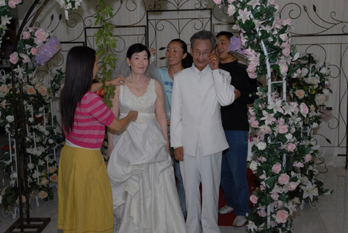 為了老人順利的辦成婚事,社會各界紛紛伸出援助之手。市民政局局長曾祥華專門安排工作人員為兩位老人辦證,免收相關辦證費用;臺僑屬代表劉青勇特意為兩夫婦創作了一副名為:《白頭帶老春長在》的畫;臺北盛典婚紗影樓負責人王芳女士為他們免費拍攝并贈送婚紗照;市委副秘書長、市攝影家協會副會長劉燦在忙碌的工作中,還專門抽了兩天下午時間,協同影樓給兩位老人拍了室內、外景婚紗照……
