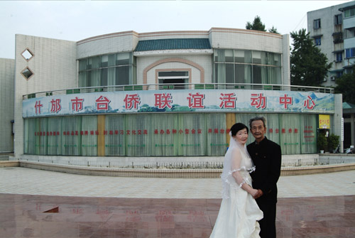 在什邡臺僑聯誼活動中心前深情留影。(攝影:李祥)