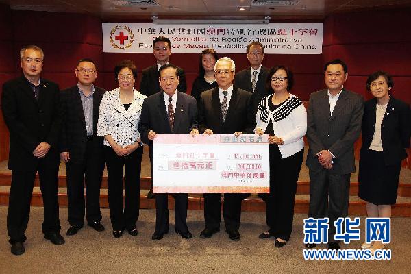 8月13日,澳門中華總商會向澳門紅十字會捐贈30萬澳門元,援助甘肅舟曲受災群眾。截至當日,澳門紅十字會共收到澳門社會各界向舟曲災區的捐款373.06萬澳門元。 新華社發 (張金加攝)