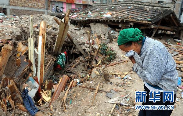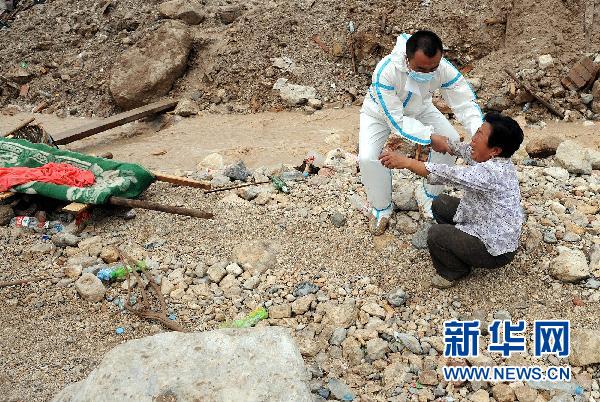 8月12日,一名遇難者親屬在災(zāi)害現(xiàn)場(chǎng)祭奠親人。當(dāng)日,許多遇難或失蹤者的家屬在舟曲縣城泥石流災(zāi)害現(xiàn)場(chǎng),祭奠親人,寄托對(duì)親人的無(wú)限哀思。 新華社記者 陶明攝