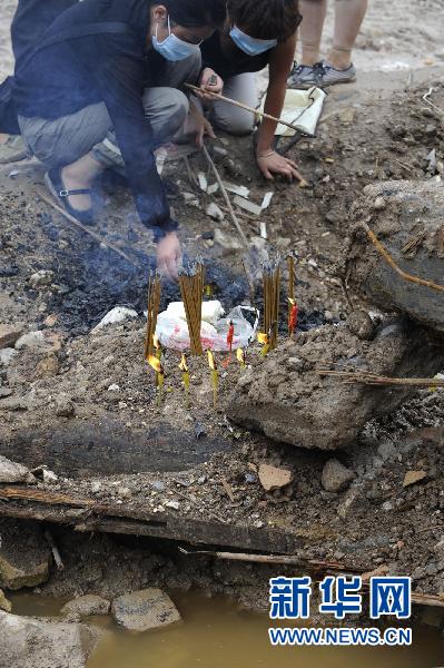 8月12日,遇難者親屬在災(zāi)害現(xiàn)場(chǎng)祭奠親人。當(dāng)日,許多遇難或失蹤者的家屬在舟曲縣城泥石流災(zāi)害現(xiàn)場(chǎng),祭奠親人,寄托對(duì)親人的無(wú)限哀思。 新華社記者 陶明攝