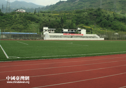 汶川縣水磨中學的塑膠跑道操場。(中國臺灣網(wǎng) 高斯斯 攝)
