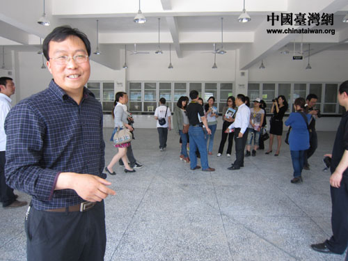 名山縣副縣長劉勇向記者介紹名山縣與臺(tái)灣互相援助的情況。2009年臺(tái)灣遭受“莫拉克”風(fēng)災(zāi)后,當(dāng)?shù)匕傩占娂娋杩睿ㄖ袊_(tái)灣網(wǎng) 朱毅 攝)