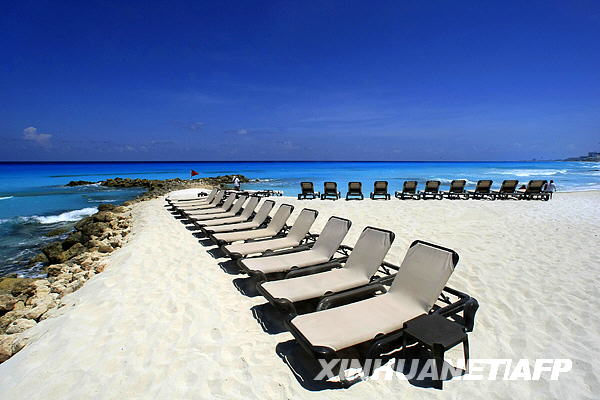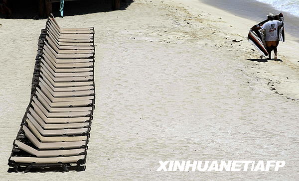 5月12日拍攝的照片顯示墨西哥旅游勝地坎昆海灘上見不到一個游客。甲型H1N1流感使墨西哥旅游業(yè)遭受重創(chuàng)。墨西哥地方官員11日說,游客銳減已迫使旅游勝地坎昆等地的25家酒店關門。墨旅游促進委員會公布最新預測稱,2009年墨西哥旅游業(yè)盈利將比2008年減少近三成。新華社/法新
