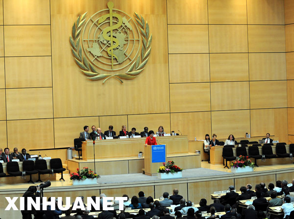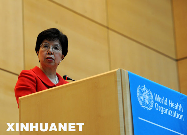 當(dāng)天,第62屆世界衛(wèi)生大會開幕,陳馮富珍在會議上呼吁全球加強(qiáng)協(xié)作,應(yīng)對甲型H1N1流感。新華社記者曾毅攝