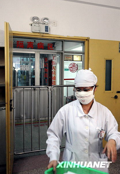 5月22日,一位醫務人員從廣州市第八人民醫院收治廣州市甲型H1N1流感病例的隔離病區走出。