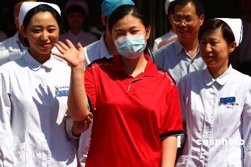 5月22日,北京市首位甲型H1N1流感患者小劉康復(fù)出院。小劉今年18歲,就讀于美國(guó)紐約州某大學(xué),本月11日回京,兩天后感覺(jué)發(fā)熱,14日到北大醫(yī)院就診疑似流感,15日凌晨轉(zhuǎn)入北京地壇醫(yī)院,16日確診為甲型H1N1流感患者。中新社發(fā) 富田 攝