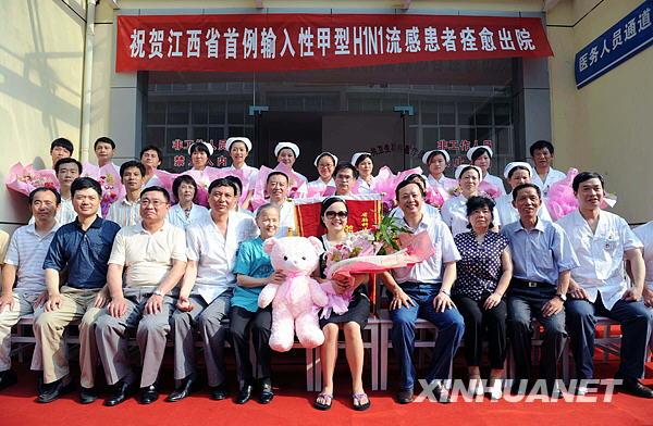 當(dāng)日上午,江西省首例甲型H1N1流感患者痊愈出院。江西省胸科醫(yī)院為患者舉行了出院儀式。江西省衛(wèi)生廳表示,這名患者體溫正常已超過(guò)3天,咳嗽、咽痛、流涕等流感樣癥狀消失3天以上,無(wú)并發(fā)癥,且16日、17日連續(xù)兩天咽拭子甲型H1N1流感病毒核酸檢測(cè)均為陰性。