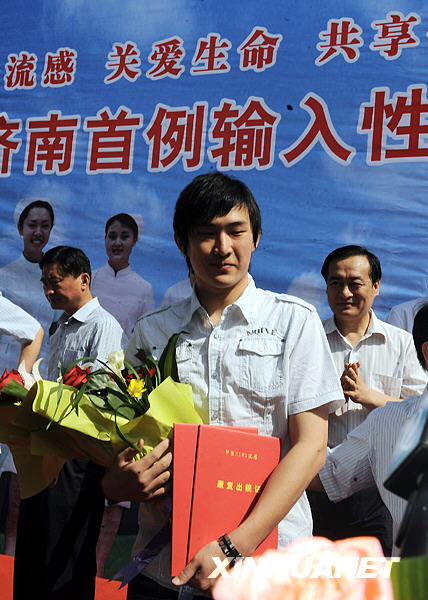 濟南市衛生局局長賈堂宏說,常規來講,出院是不需要舉行儀式的,之所以舉行出院儀式,是要向大家證實,甲型H1N1流感是可控可防,可以治愈的,只要我們共同攜手,就能戰勝病魔。