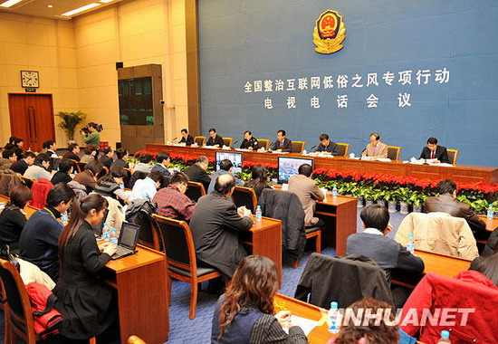 國務院新聞辦、工業和信息化部、公安部、文化部、工商總局、廣電總局、新聞出版總署等七部門1月5日上午召開電視電話會議,部署在全國開展整治互聯網低俗之風專項行動。國務院新聞辦副主任蔡名照主持會議并講話,強調要采取有力措施堅決遏制網上低俗之風蔓延,進一步凈化網絡文化環境,保護未成年人健康成長,推動互聯網健康有序發展。