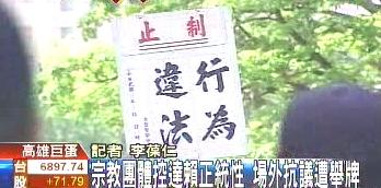 達(dá)賴今天早上在高雄巨蛋舉辦“祈福法會(huì)”,場外聚集了許多抗議民眾,抗議達(dá)賴赴臺(tái)的不良政治企圖。來源:臺(tái)灣TVBS電視臺(tái)