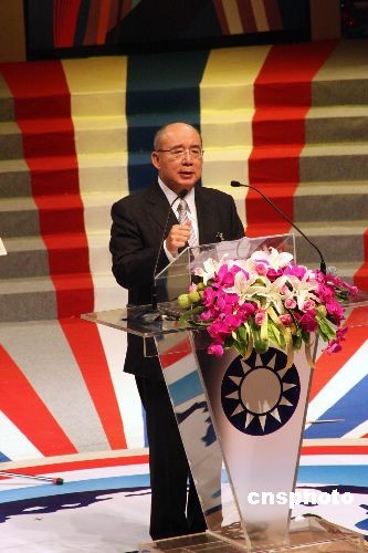 11月22日,中國國民黨第十七次全代會臨時會議在臺北“國父紀念館”舉行。圖為會議中,國民黨主席吳伯雄以“團結奮起,戰勝逆境”為題致詞。他表示,最近發生全球金融海嘯,國民黨要做執政團隊的后盾,支持他們突破困境。 中新社發 劉舒凌 攝