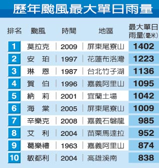 “莫拉克”臺風(fēng)帶來破紀錄驚人雨量。圖片來源:臺灣《聯(lián)合報》