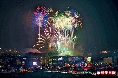 中國臺(tái)灣網(wǎng)1月1日消息 據(jù)臺(tái)灣《蘋果日報(bào)》報(bào)道,不讓臺(tái)北101大樓專美,2010年的第一刻,臺(tái)灣中、南部的天空也同步開出燦爛煙花。高雄夢時(shí)代廣場長達(dá)199秒的跨年煙火秀,1萬8000發(fā)萬紫千紅的煙火,與夢時(shí)代摩天輪車廂LED燈相互輝映,現(xiàn)場50萬人齊呼:“新年快樂!”云林劍湖山和高縣義大世界都上演摩天輪煙火秀,劍湖山摩天輪更射出10顆心心和“LOVE 2010”圖樣,現(xiàn)場情侶都忘情用熱吻迎接新的一年。