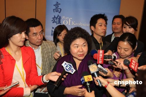 5月23日晚,高雄市長陳菊在上海向眾媒體表示,北京、上海之行達到預期。 中新社發 潘索菲 攝