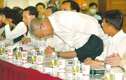 10日接任“行政院長”的吳敦義,晚上南下高雄探望災民,并聆聽災民意見。一開始先向災民深深一鞠躬。