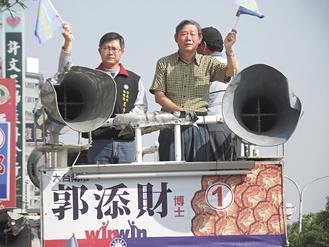 東南網11月29日訊 據臺灣媒體報道,敗選的國民黨臺南市長候選人郭添財陣營原本安排昨天上午謝票,但“主角”郭添財臨時缺席,由國民黨臺南市黨部主委蘇明國等代打,支持者失望說,“這就是從此退出政壇的表示嗎?”