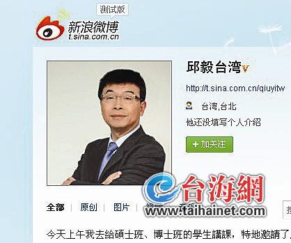 臺海網11月18日訊(海峽導報記者 張燕娟)國民黨籍“立委”邱毅昨晚向導報記者證實,在大陸友人的“慫恿”下,他于10天前正式“登陸”新浪微博,隨時更新他的最新消息。