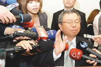 “衛生署長”楊志良(右)昨在立院專案報告瘋牛病事宜,卻遭媒體團團包圍追問二代健保,楊志良揮揮手,絕口不提新版本內容。