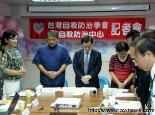 臺灣自殺防治學會8月31日召開記者會,呼吁“莫拉克”風災災后心靈重建的重要性。開會前,大家起立為“莫拉克”風災罹難者默哀。圖片來源:臺灣“今日新聞”