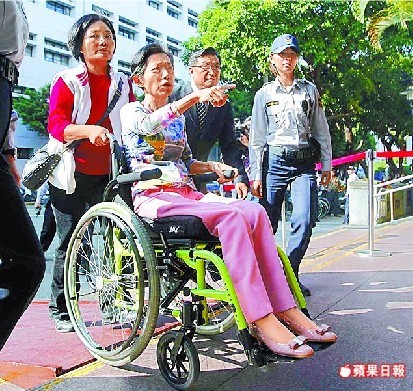 吳淑珍昨到出庭時不滿資產遭凍結,向法官喊窮。來源:臺灣《蘋果日報》