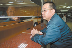 余政憲昨天出境前被航警攔截,隨即到臺北地檢應訊,訊后依圖利、泄密等罪聲請收押禁見。(臺灣《中國時報》圖)