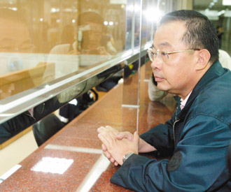 余政憲昨天出境前被航警攔截,隨即到臺北地檢應訊,訊后依圖利、泄密等罪聲請收押禁見。(臺灣《聯合報》圖)