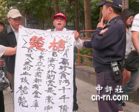 陳水扁委任律師鄭文龍在接受記者訪問時,一位反扁的老伯伯在一旁不停高喊“槍斃陳水扁”,引來警察的注意。警察隨后勸離這位老先生,老先生還從包包里掏出準備好的反扁布條,引起一陣小小的騷動。