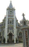 地址 高雄市前金區(qū)五福三路151號 電話 (07)282-3860 營業(yè)時間 周日6點-17點 位于五福三路高雄大橋旁的前金玫瑰圣母院,建于清咸豐年間,是臺灣第一座天主堂;混合哥德式與羅馬式風(fēng)格的尖塔建筑,被認為是臺灣最富裝飾藝術(shù)的教堂,已被列為三級古跡。 教堂正面為高聳的尖塔,兩旁另有小型衛(wèi)塔,門眉上仍懸著咸豐敕令的“奉旨”石碑,圓形拱門上有長翅膀的小天使浮雕,黑、灰、藍為主的建筑中,排列著彩色玻璃圓拱窗,鮮明耀眼的色調(diào),為圣堂增添瑰麗莊嚴。內(nèi)部交叉拱筋及神龕映著彩色玻璃,極為莊重,雕工精細的木質(zhì)中央祭臺則是19世紀西班牙所做,在臺灣老式教堂中屬于罕見的藝術(shù)珍品,二樓則有成列管風(fēng)琴,其藝術(shù)性相當引人流連。 乘車風(fēng)向標: