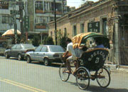 三輪車在臺灣島上早已全面絕跡,但在旗津則成為招徠觀光客的一大特色。游客可搭三輪車到特定景點,或循觀光動線漫游;耳聽店家吆喝、眼看人來人往、觀賞海岸公園的盎然綠意,這種獨特的游覽方式,為旗津獨具的魅力之一。