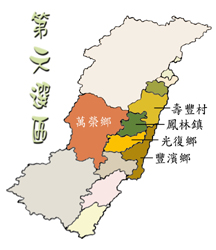 吉安鄉、壽豐鄉、鳳林鎮 光復鄉、豐濱鄉、萬榮鄉 |