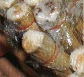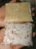 阿里碰碰 阿里碰碰是“南勢阿美”特有的食物,與粽子有些類似,亦可稱為阿美飯包。阿美人利用海濱常見的林投,先將其葉子摘下,削除邊刺,再以4片葉編織成袋狀,塞入生糯米水煮或干蒸。由于有林投葉的薰陶,食用起來別具一股芳香。