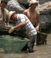 巴拉告田埂間看來尋常的水洼,其實(shí)是馬太鞍獨(dú)特的生態(tài)捕魚池——巴拉告。馬太鞍人捕魚的傳統(tǒng)方法是將河水引進(jìn)池中,池底放置空心的檳榔樹干,上面再覆蓋樹枝、竹枝,形成一個(gè)適于魚蝦嬉游的環(huán)境。上層的樹枝間是小蝦世界,下一層竹枝間有小魚梭游,最底層則是土虱、鰻魚等無鱗大魚的天地,上層魚蝦的排泄物下沉后自然成為大魚養(yǎng)料,形成生態(tài)循環(huán)。捉魚時(shí)水閘門關(guān)上,池中一尾尾活溜溜的大魚自入筌中。捕魚對(duì)馬太鞍人來說是大事,婚喪喜慶結(jié)束后,主人往往邀請(qǐng)眾親朋好友一起下魚池捉魚,意味著哀傷喜樂就此告一段落。而捕魚也是一項(xiàng)重要的教育活動(dòng),漁獲量少,長輩就會(huì)訓(xùn)誡說這是因?yàn)轸~池環(huán)境布置不好、子孫偷懶,才招致上蒼懲罰;漁獲量多時(shí),除了感恩外,更會(huì)提醒后代惜福。崇敬自然的部落生活價(jià)值,就在捕魚一事中代代傳遞。沼澤地的初夏,池中荷花盛開綻放,迎風(fēng)招展更顯嫵媚;初秋,菱角池中滿是浮萍,一條條身影半截埋進(jìn)池里忙著采收;鄉(xiāng)道旁還不時(shí)有族人當(dāng)場捉魚飲酒野餐,不論是用火燒烤,或是拿來煮湯,鮮香在空氣中傳遞四逸,帶動(dòng)出歡樂的氣氛。
