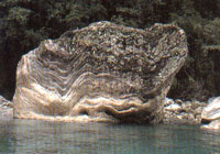 砂卡礑當溪發源于二子山和曉星山之間,在太魯閣附近注入立霧溪,流程雖僅20公里,但溪水終年清澈豐盈,儼如遺世深藏的一方秘境,故被稱作神秘谷,目前已由太魯閣公園規劃為游覽步道。神秘谷步道為夏日最受歡迎的親水步道,由中橫公路長春祠附近的長春隧道內岔路轉出,可抵神秘谷大橋頭的步道入口。前半段依山壁筑造,沿途白色的大理石峽谷景觀及清澈靜謐的深潭令人神往,沿途多蝴蝶、鳥類,為觀賞自然生態的好去處。步道全長4.4公里,單程步行約2小時。 步道入口現位于神秘谷大橋旁,循著穿鑿的大理石巖壁上的步道,秘境中的山水如卷軸般逐一揭開;溪水藍綠靜謐,閃耀著琉璃般的光澤,魚群的身影清晰可見,秋來時,點點黃葉浮綴水面,更添詩情畫意。愈往前行,步道愈接近水面,偃臥其間的大理石,浮現出流云般的紋彩,流泉漱石,吟唱出淙淙悅耳的詩篇。