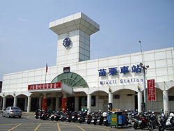 臺鐵山線在該縣設有造橋車站、豐富車站、苗栗車站、南勢車站、銅鑼車站、三義車站及舊山線的勝興車站;海線則設有談文車站、大山車站、后龍車站、龍港車站、白沙屯車站、新埔車站、通霄車站、苑裡車站。