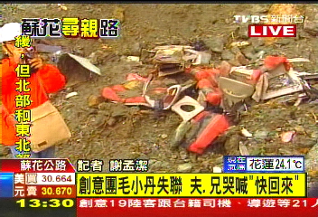 據報道,創意旅行社失聯大陸游客的家屬今日再次來到蘇花公路失事地點,他們準備了鮮花素果和紙錢,呼喊著家人的名字,希望能早日找到失聯的家人。(中國臺灣網 馮存健)