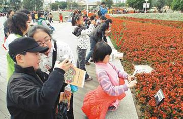 為參加22日的頒獎典禮,11名小學四、五年級的上海“小作家”們,在師長的帶領下來到臺灣,19日抽空逛了臺北花博。不少學生一進到花博園區,對于地景花海的“圣誕紅”花海贊嘆不已,不僅拿出相機頻拍照,還要家長幫忙合照,相當熱鬧。