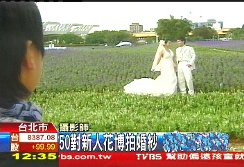 今天,花博大放送,開幕前先開放50對(duì)新人,搶拍婚紗照。拍照儀式在早上9點(diǎn)30舉行,許多新人都迫不及待的早早趕來(lái),但也有人為了精心裝扮而遲到。不過(guò),花博婚紗初體驗(yàn),眾多新人都擺出甜蜜Pose,并熱情擁吻,大秀恩愛(ài)。(中國(guó)臺(tái)灣網(wǎng) 吳斌)